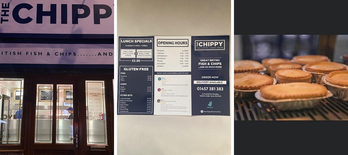 Savor the best fish and chips at The CHIPPY! Located in Mossley, we offer generous portions, gluten-free options, and delicious pies. Enjoy crispy batter, rich curry, and traditional rag pudding, along with our famous peas and gravy. Call us at +44 1457 381383 for takeaway today!